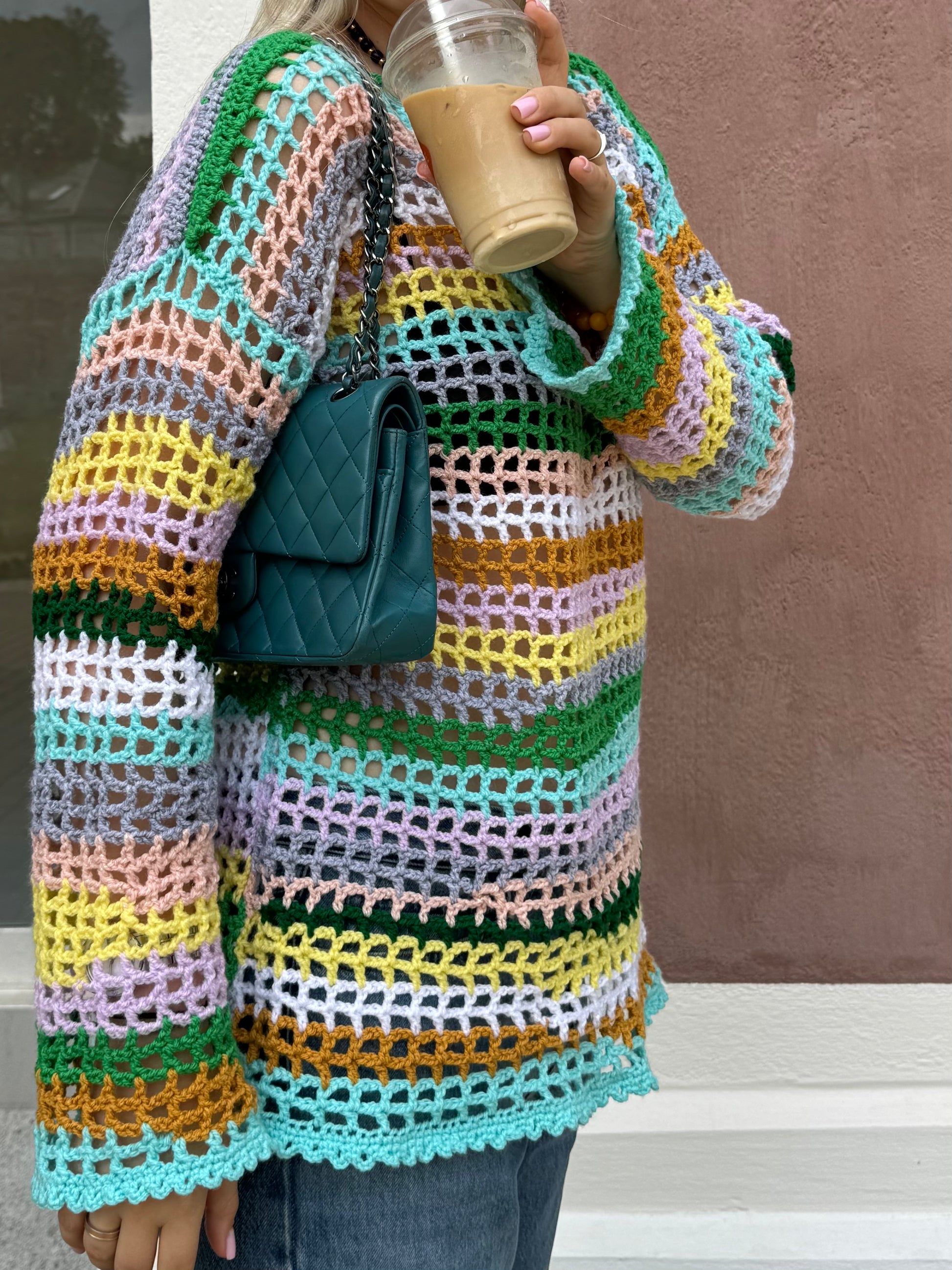 Handcrafted with care and creativity, the Colorique Long-Sleeve Shirt blends bold personality with cozy comfort. Each piece is made to order, using soft, breathable yarn that holds its shape beautifully while offering warmth and structure.