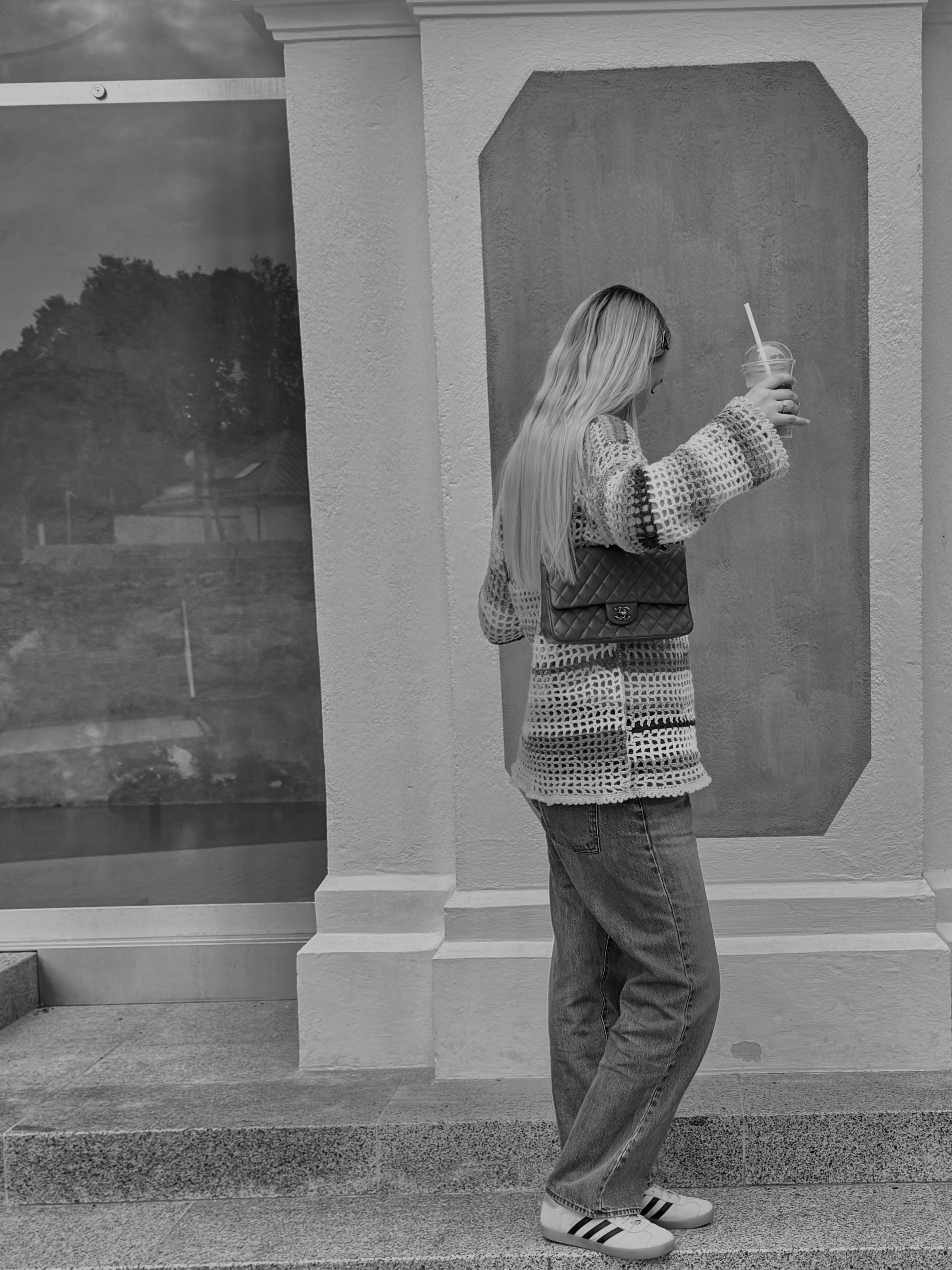 The fit is relaxed but flattering, with a straight silhouette and full-length sleeves. It’s perfect for transitional seasons, layering, or as a standout piece on its own.